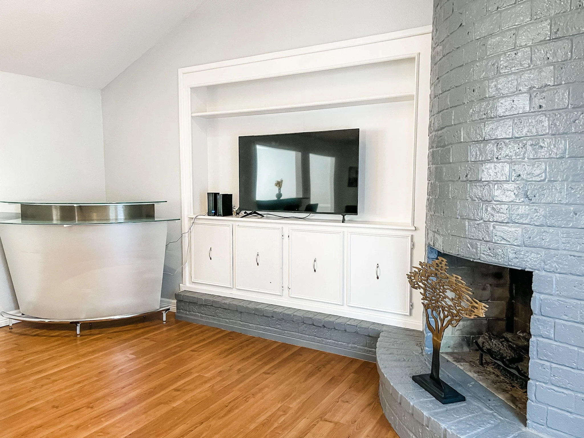 Enjoy SUPER tall cathedral ceilings, an open floorplan, abundant natural lighting and an original (unique) round fireplace!