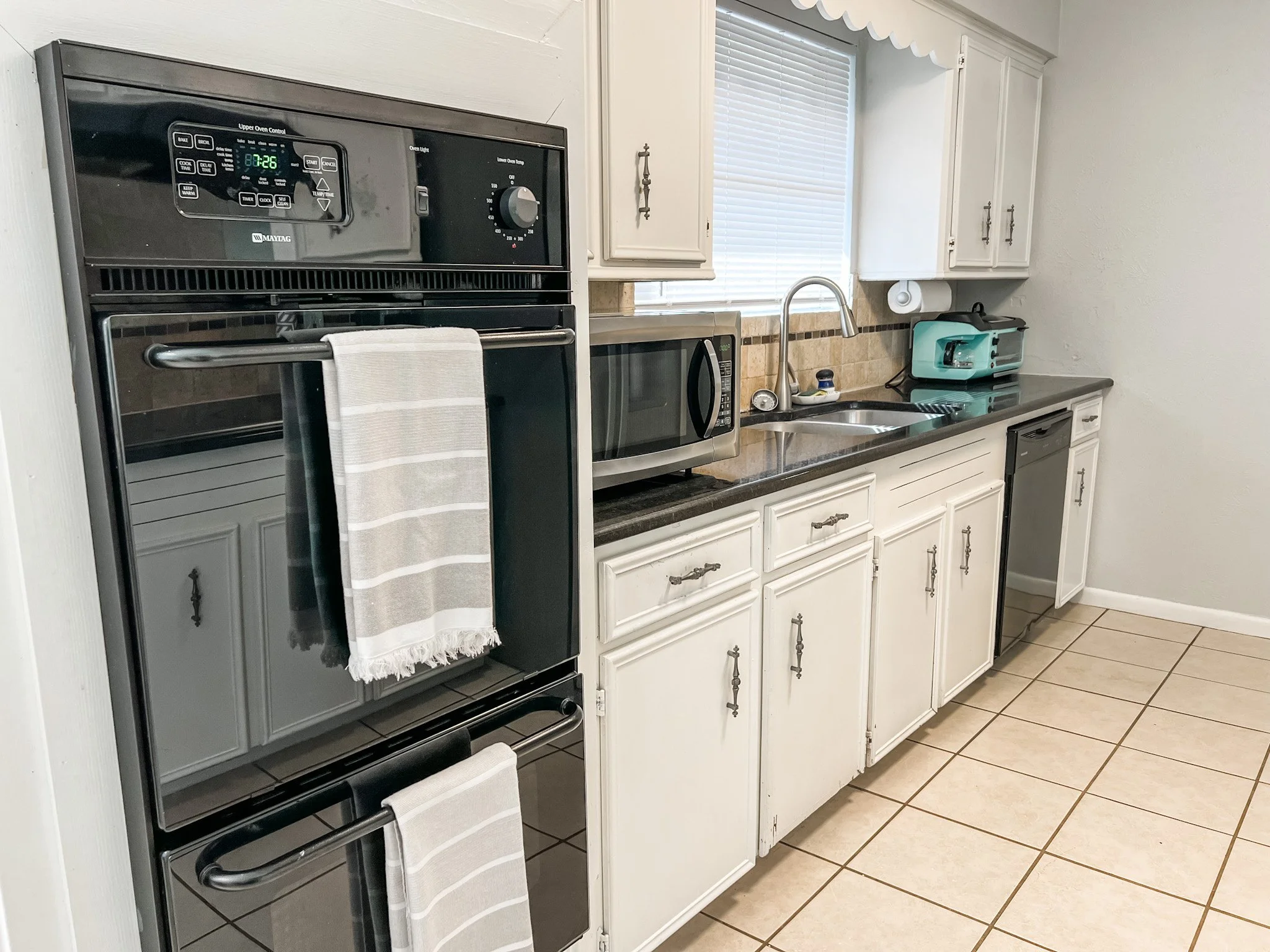 Appliances: The home comes with black appliances. Microwave. Refrigerator. Dishwasher.